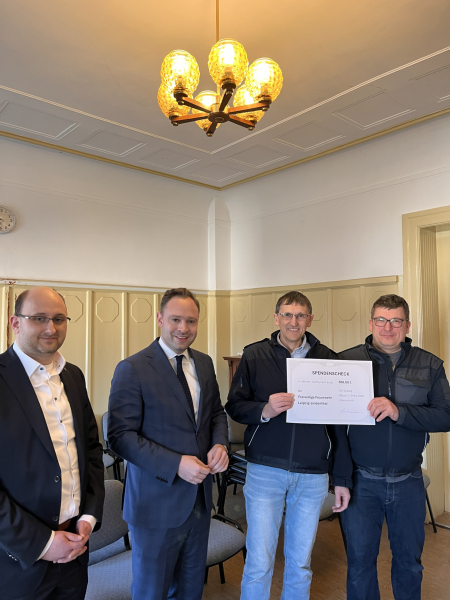 Anschließend ging es nach Lindenthal, wo Alexander Dierks dem Förderverein der Freiwilligen Feuerwehr einen Spendenscheck über 500 Euro für deren jährliches Hoffest überreichte.