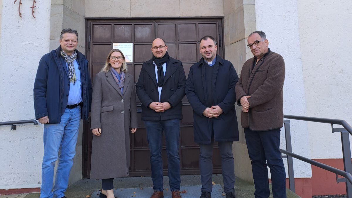 Nach unserem Gespräch ging es in die katholische Gemeinde St. Hedwig in Böhlitz-Ehrenberg in meinem Wahlkreis. Hier trafen wir uns gemeinsam mit Pfarrer Andrzej Glombitza, dem Mitglied des Kirchenvorstands Irmfried Bassl und dem Vorsitzenden der Caritas Leipzig Tobias Strieder.