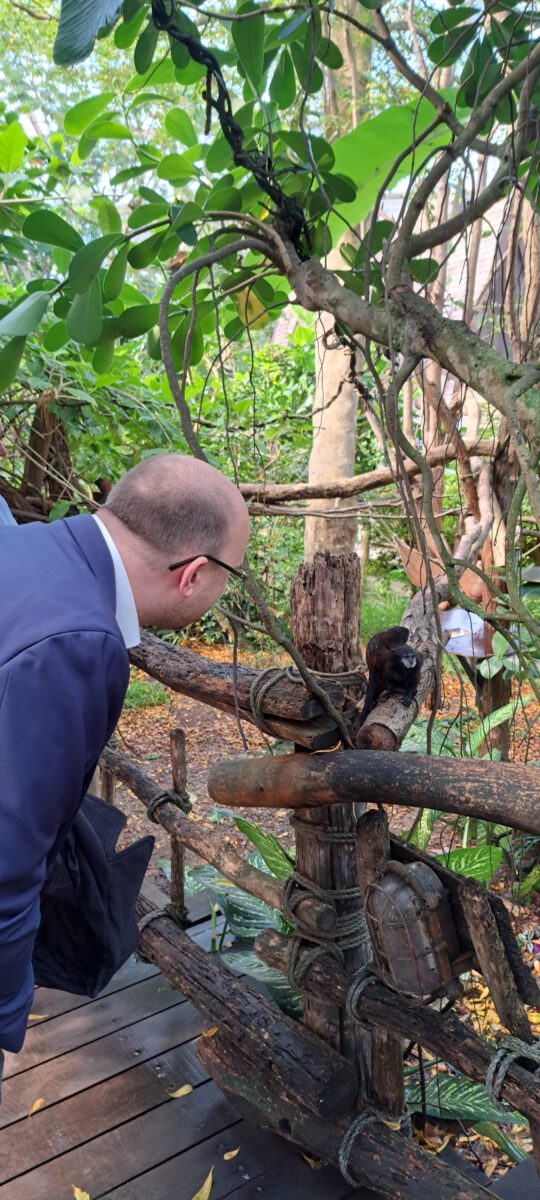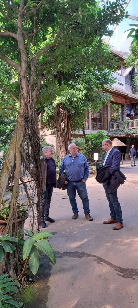 Bei einem gemeinsamen Rundgang ging es unter anderem durch das tropisch warme Gondwanaland, wo uns die neugierigen Blicke der tierischen Bewohner folgten und wir bei einer Tasse Kaffee ins Gespräch kamen. Dabei ging es um aktuelle Projekte und zukünftige Entwicklungen, beispielsweise um das im Bau befindliche Feuerland.