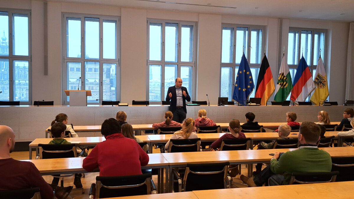Am Mittwoch, den 26. November durfte ich die nächste Besuchergruppe aus meinem Wahlkreis im Sächsischen Landtag empfangen. Die Schülerinnen und Schüler der Grundschule Stahmeln haben nicht nur viel Begeisterung für das verschneite Dresden mitgebracht, sondern auch ganz viele spannende Fragen. Diesen Fragen durfte ich mich nach einer kleinen Besichtigung des Landtags auch direkt stellen!