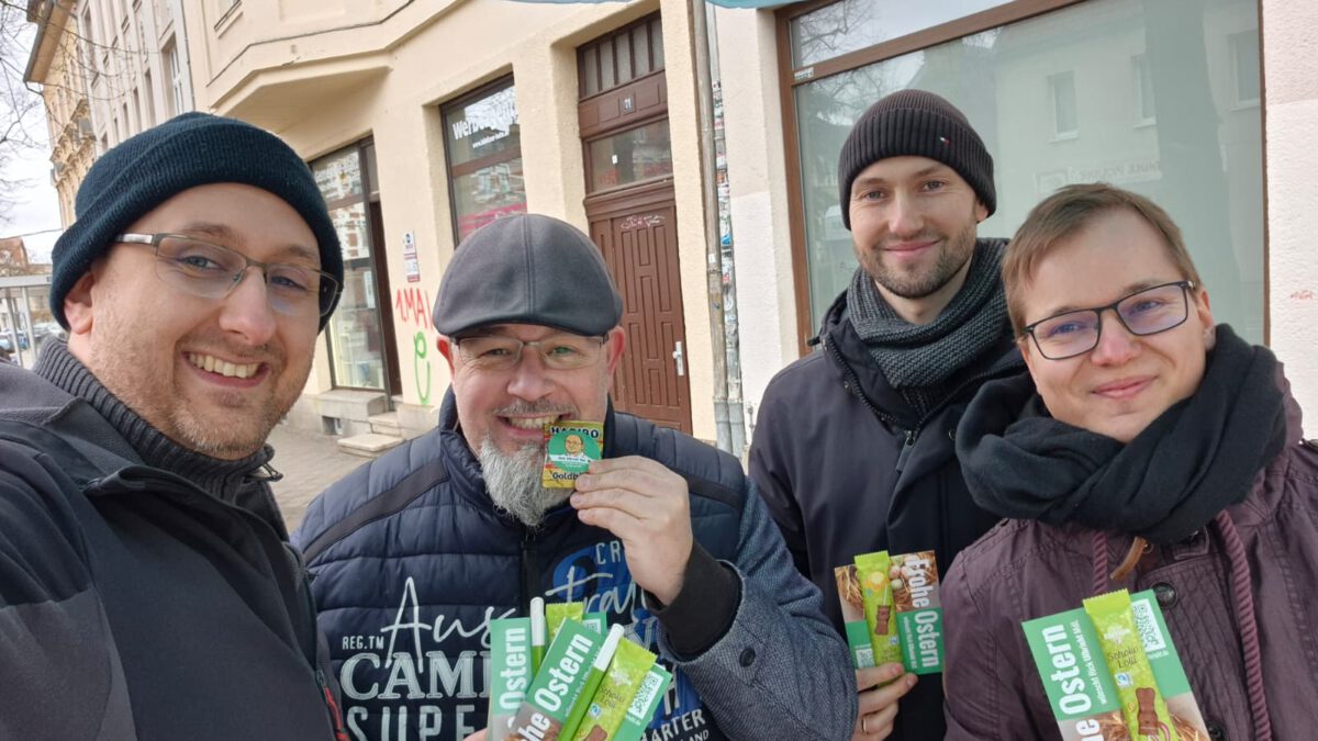 Heute ging es los: Die ersten Wahlkreisstände der Saison! Und da Sonntag schon Ostern ist, konnten sich die Besucher über eine kleine Osterüberraschung freuen.
