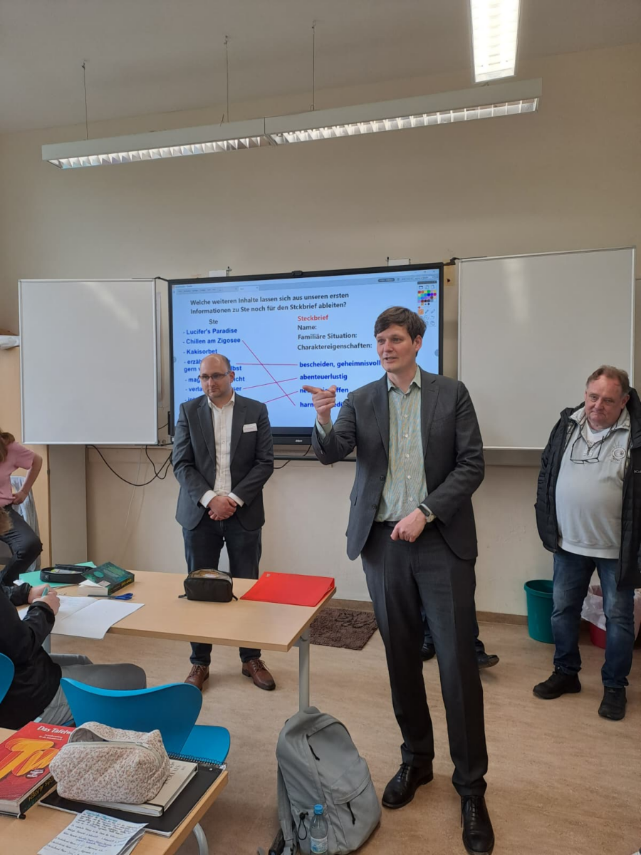Schon seit einigen Jahren steht die Schule weit oben auf der Sanierungsliste. Vor allem die dringend notwendige Dachsanierung muss nun bis 2028, pünktlich zum 125-Jährigen Schuljubiläum, kommen, wie sie durch das Schulamt heute skizziert wurde. Darüber hinaus tauschten wir uns über den Schulalltag aus sowie über das spannende Konzept der Schule, das zahlreiche Ganztagsangebote, Schulsozialarbeit und Inklusionsassistenz umfasst. Besonders beeindruckte mich die Begrüßung durch die 5b mit der Schulhymne sowie die tiergestützte Pädagogik mit zwei Therapiehunden. Danke an die Schule für den tollen Einblick in eure engagierte Arbeit – und natürlich auch danke für den Besuch in meinem Wahlkreis, lieber Conrad Clemens!